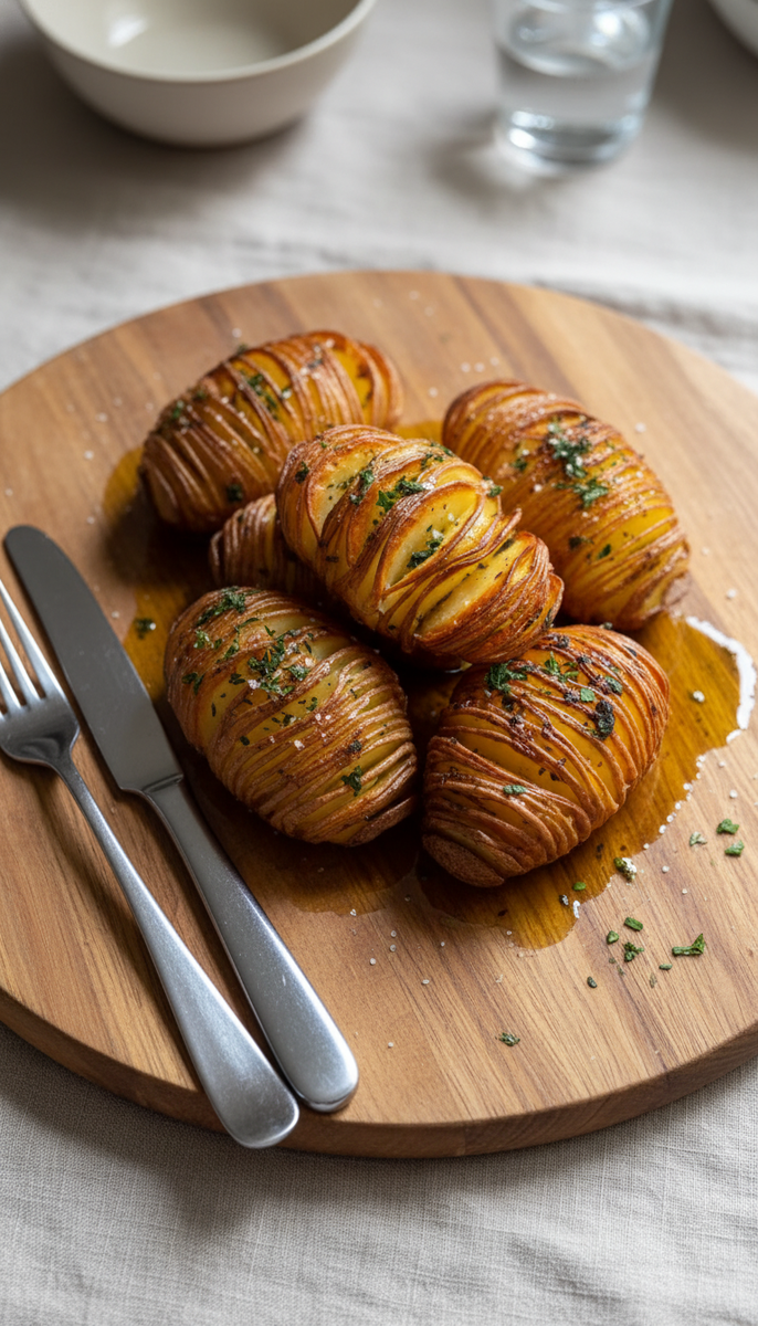Приготовленный в духовке, картофель "Гассельбак" радует своей хрустящей верхней частью и мягкой, насыщенной сердцевиной. Аромат чеснока, смешанного с растопленным маслом, придаёт ему дополнительную изюминку, которую невозможно забыть.