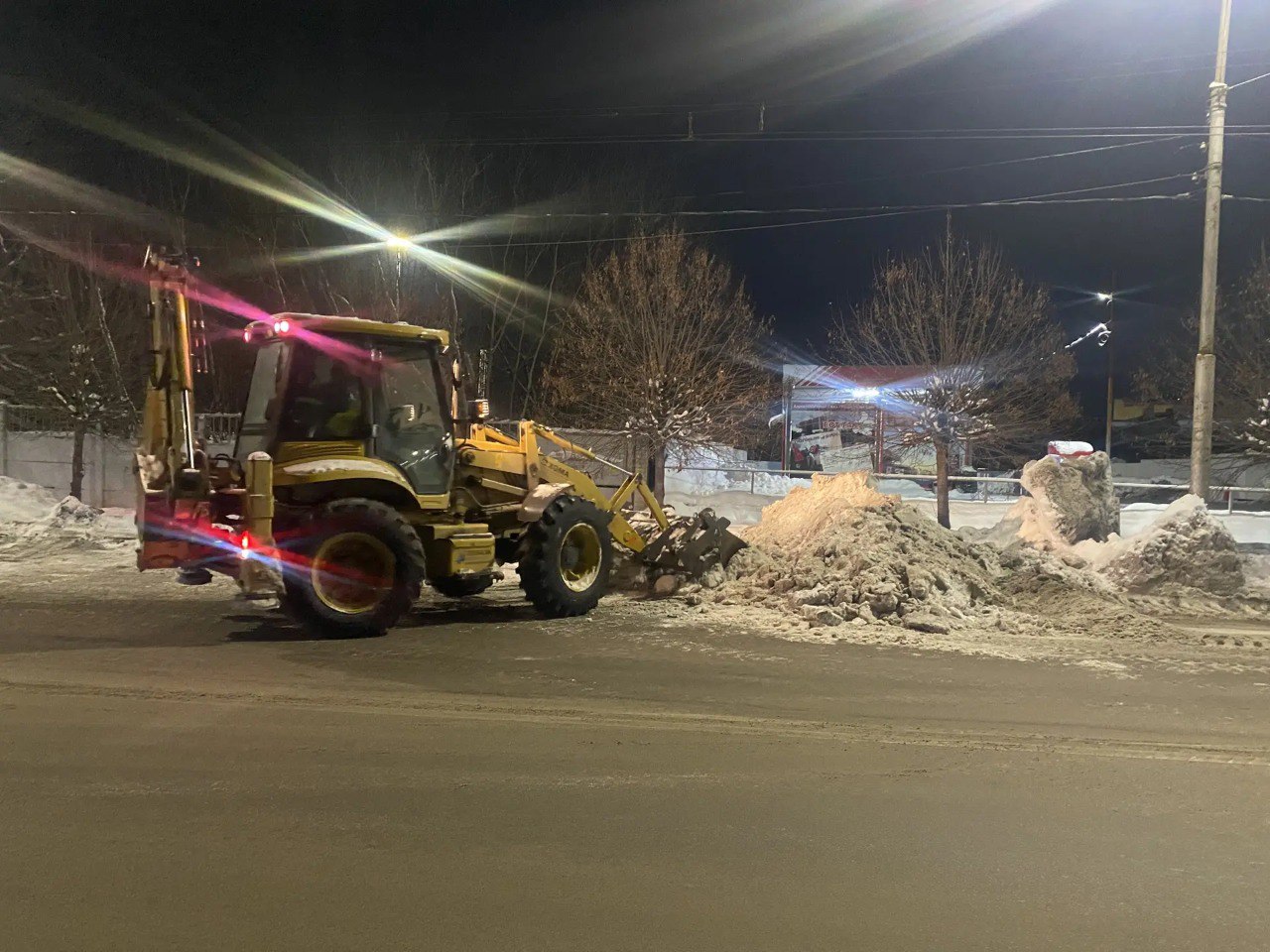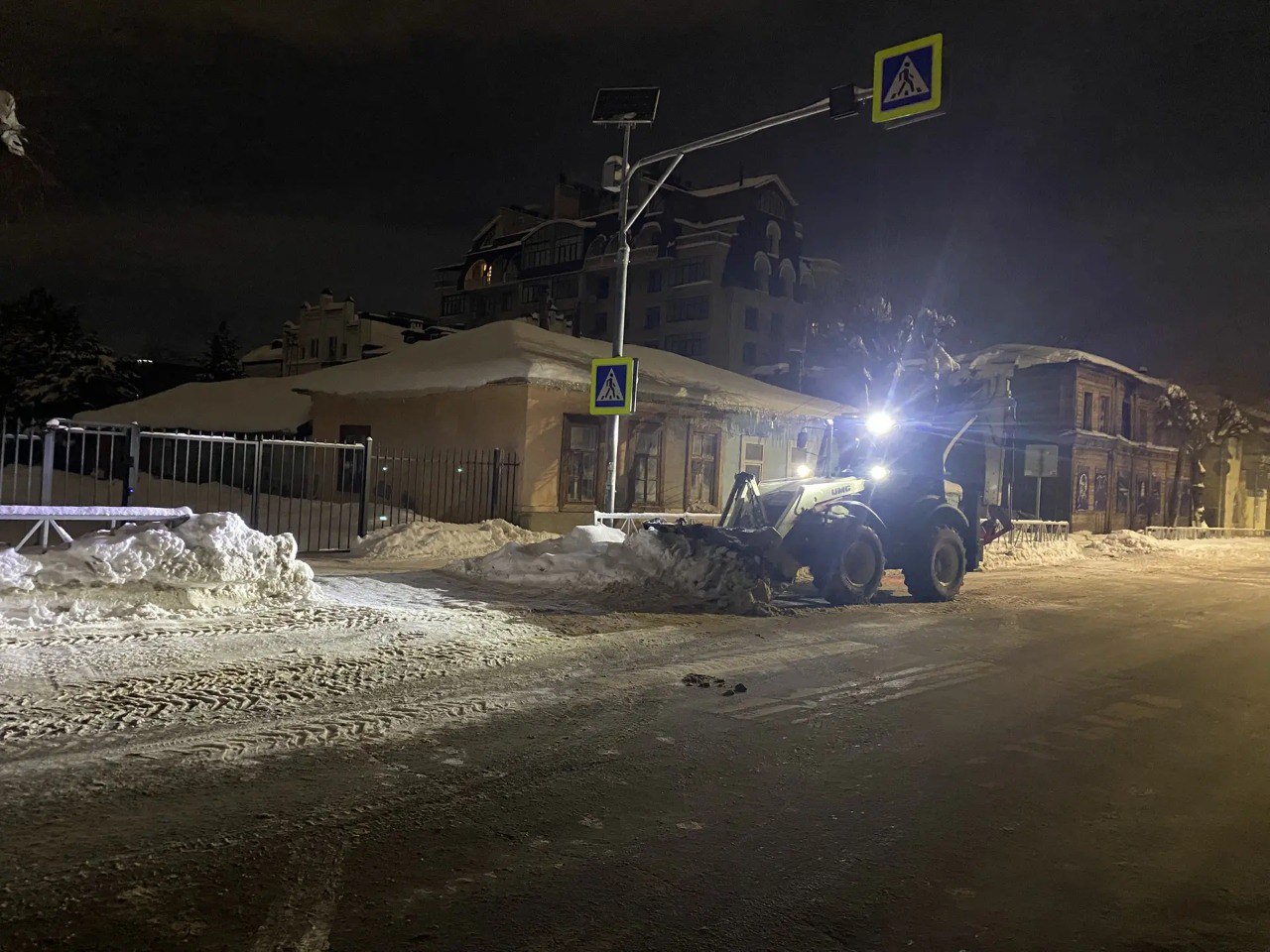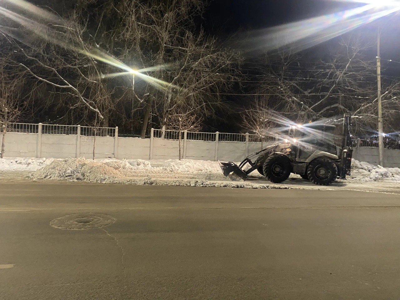 Днем на дежурстве находятся 13 КДМ. Сотрудники чистят тротуары, остановки и пешеходные переходы. Продолжается вывоз снега и обработка пешеходных зон на мостах.