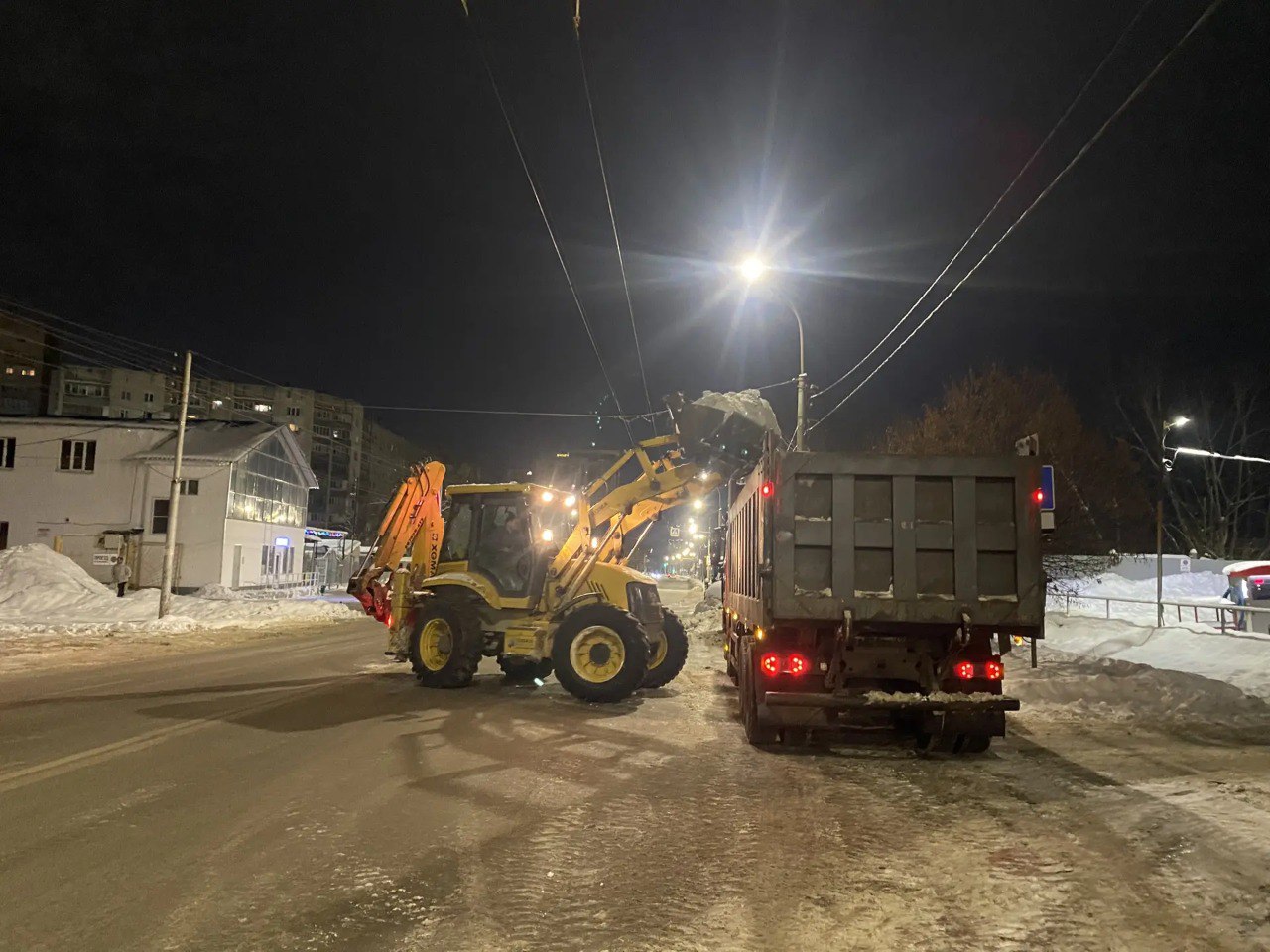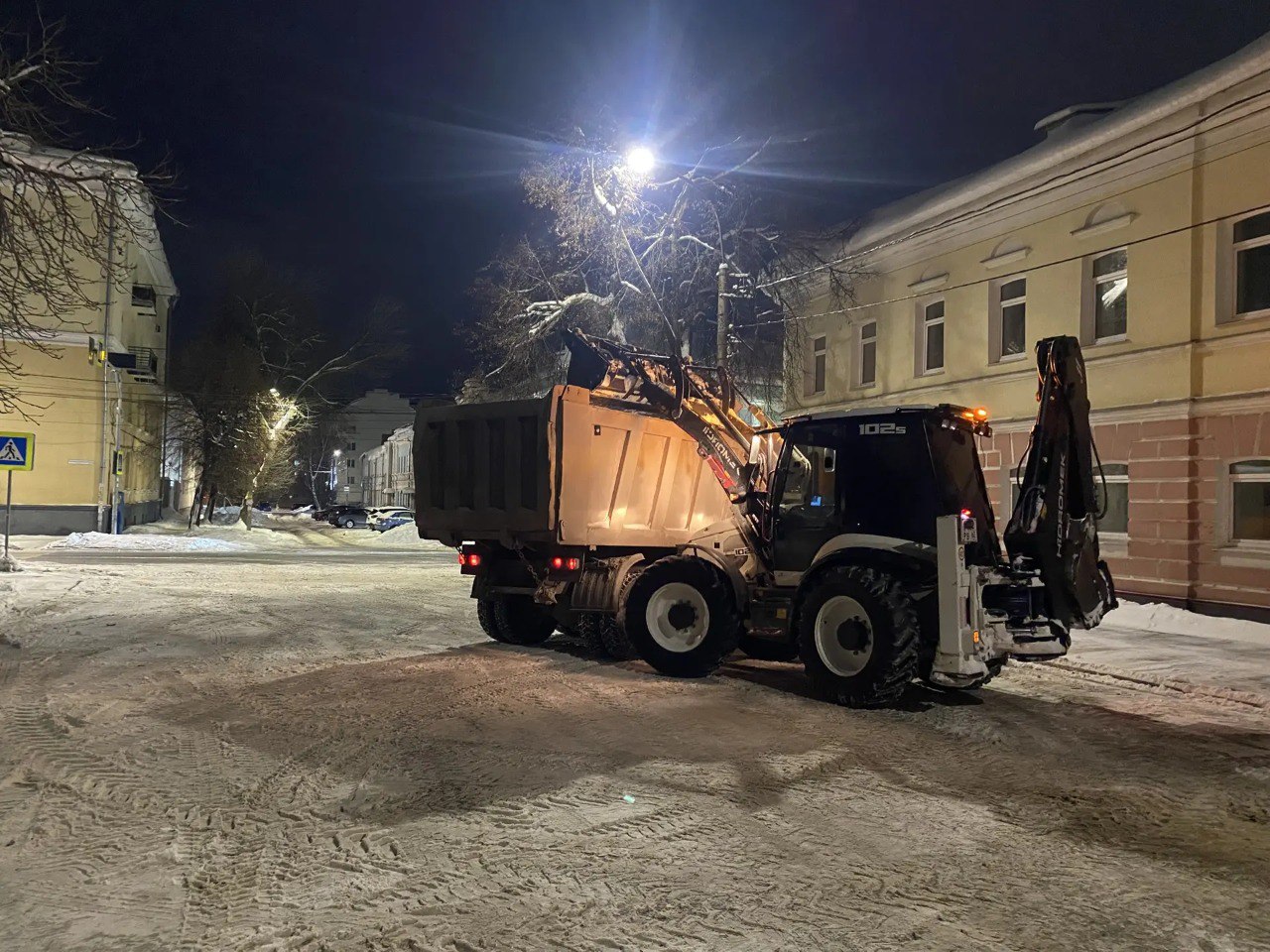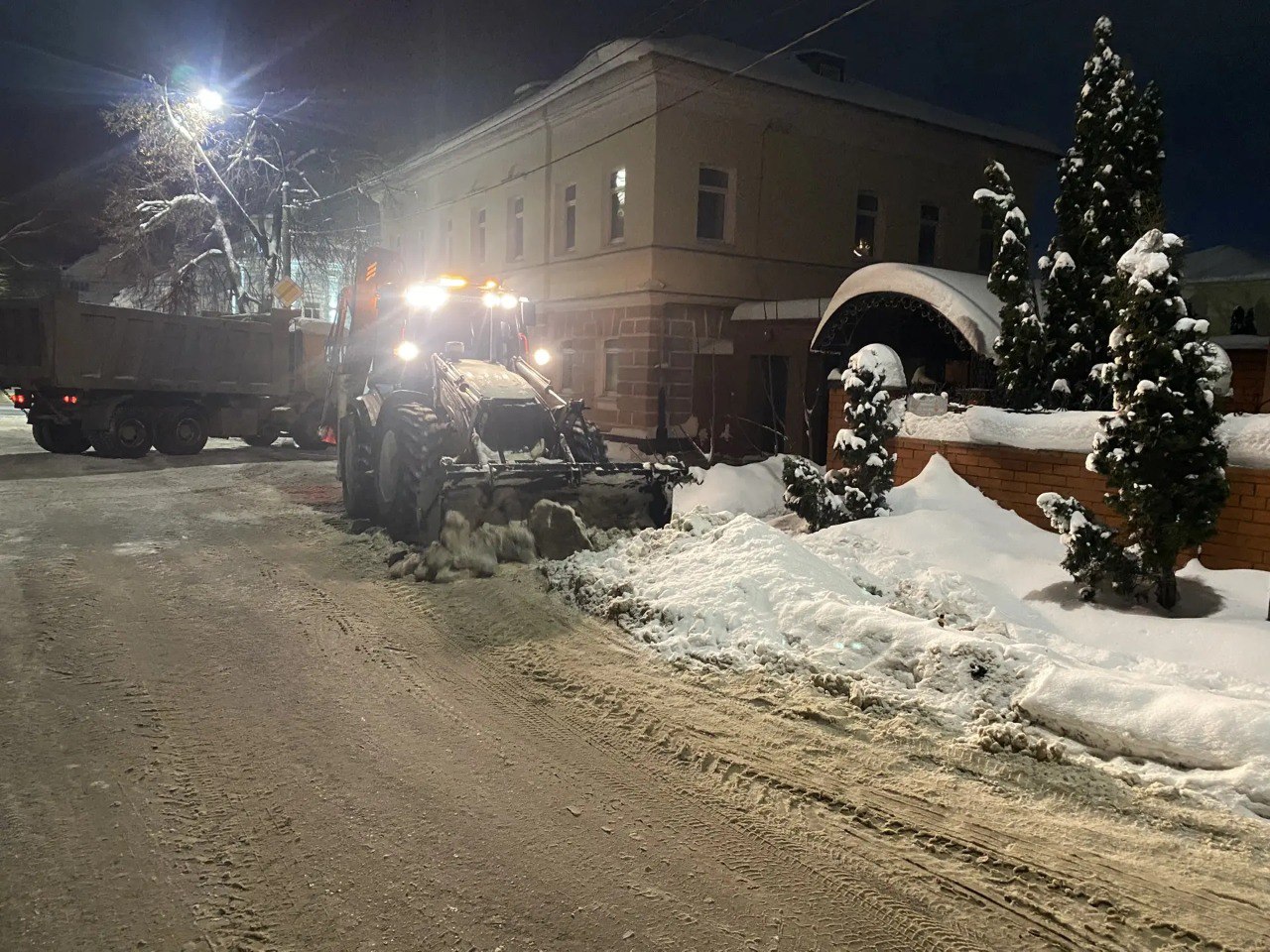 В ночь на 19 января в Рязани чистили тротуары и вывозили снег. Работали самосвалы, погрузчики, грейдеры, «Чистики» - 60 единиц техники ДБГ и подрядчиков.