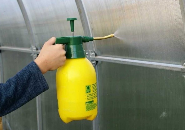 - Второй этап: Бережная дезинфекция конструкций. Для дезинфекции рам и стен лучше выбрать безопасные средства. Например, настой горчичного порошка или табачной пыли отлично справится с микробами и не нанесет вреда окружающей среде. Поликарбонатные поверхности можно очищать раствором пищевой соды (2-3 столовые ложки на литр воды).