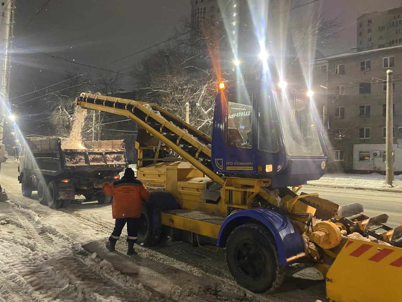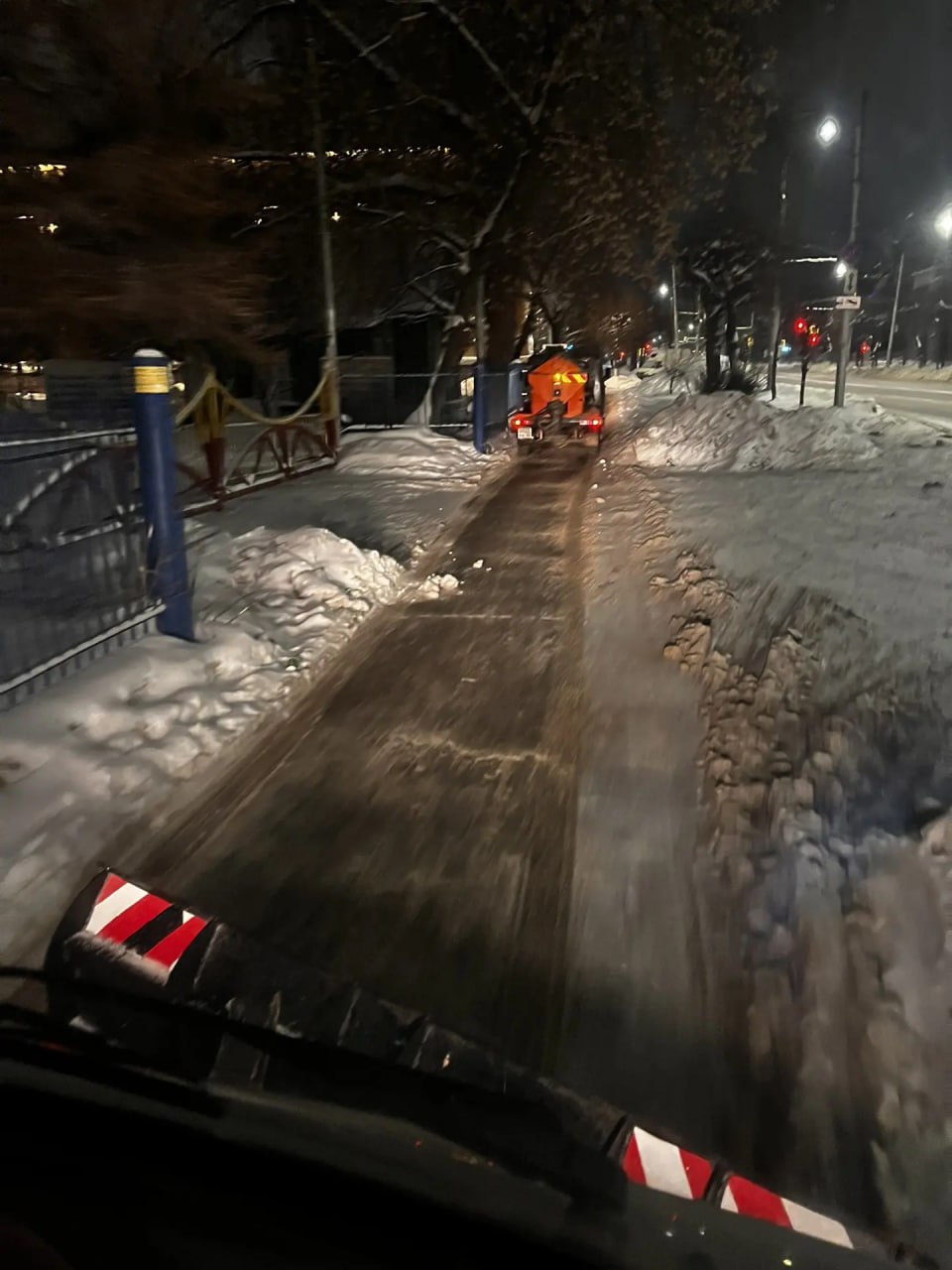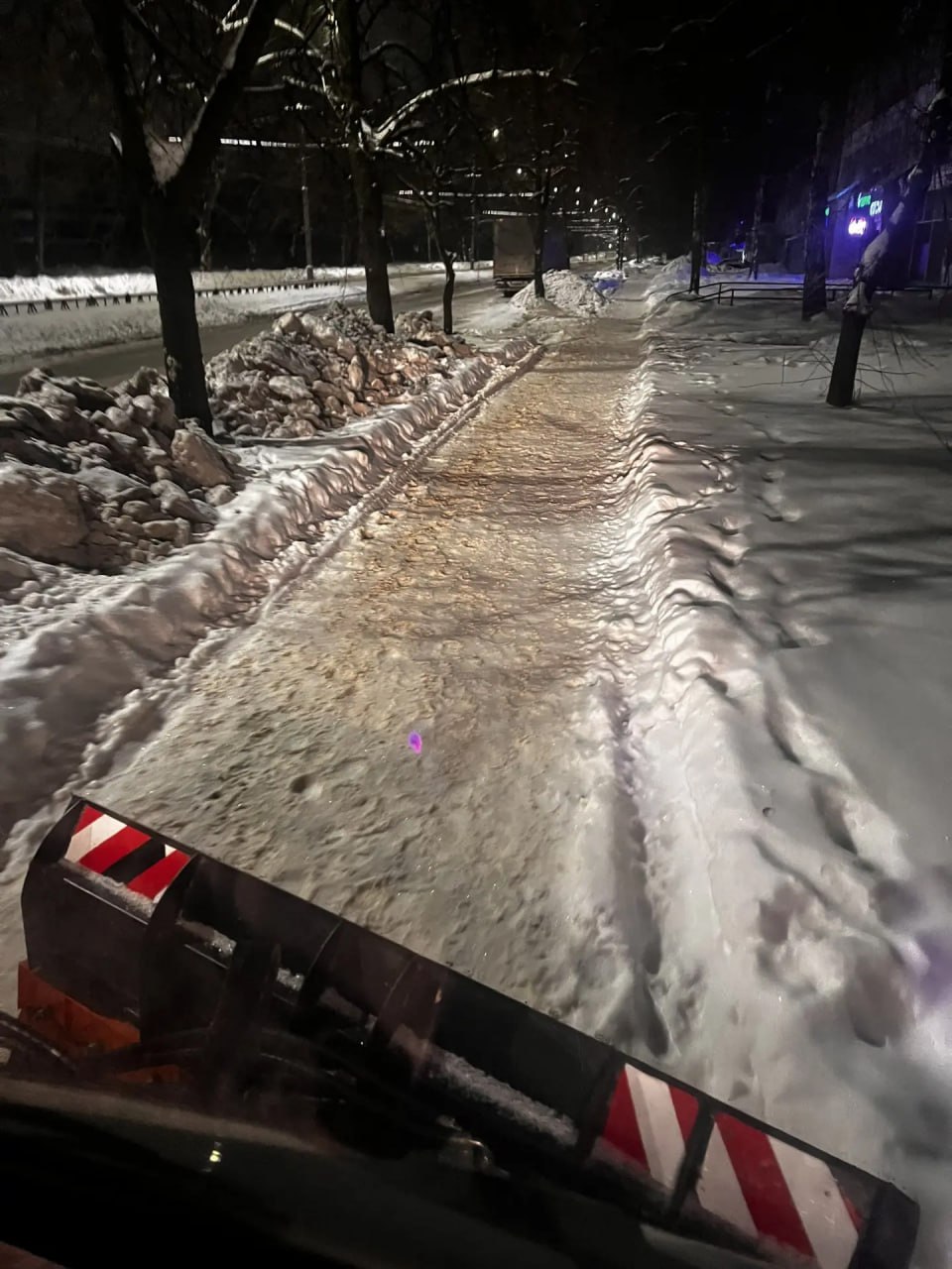 Днем бригады во всех районах города чистят остановки, переходы, лестницы, пешеходные зоны на мостах и путепроводах. Бригады мехуборки вывозят снег с городских улиц, трактора-щетки и «Чистики» подметают тротуары.