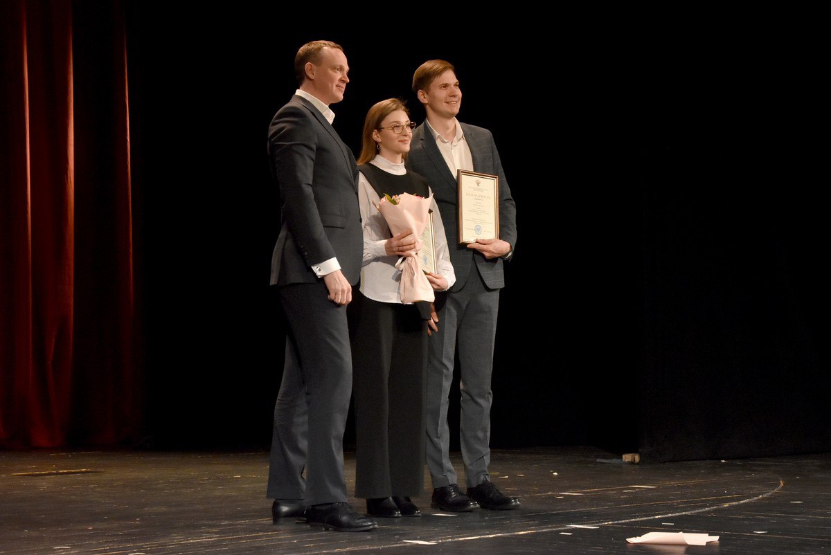 Павел Малков посмотрел постановку, а также вручил государственные и региональные награды. Пять студентов рязанских вузов получили знак губернатора «За усердие». Семье Ивахиных, выпускникам РГУ и победителям премии «Время молодых», вручили благодарственную грамоту Министерства науки и высшего образования РФ. Кроме того, губернатор передал коллективу театра «Переход» благодарственное письмо министра культуры России.