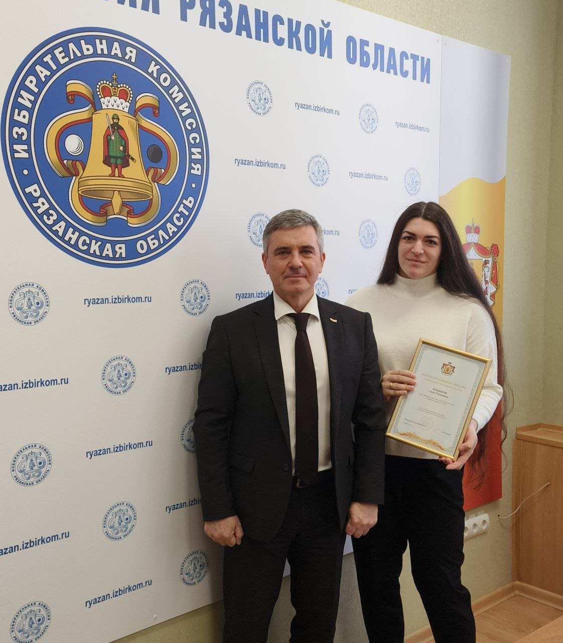 Перед началом заседания председатель Избирательной комиссии Андрей Сидоренко вручил Благодарственные письма Губернатора Рязанской области Татьяне Зениной, Александру Полетаеву и Анне Юшиной.