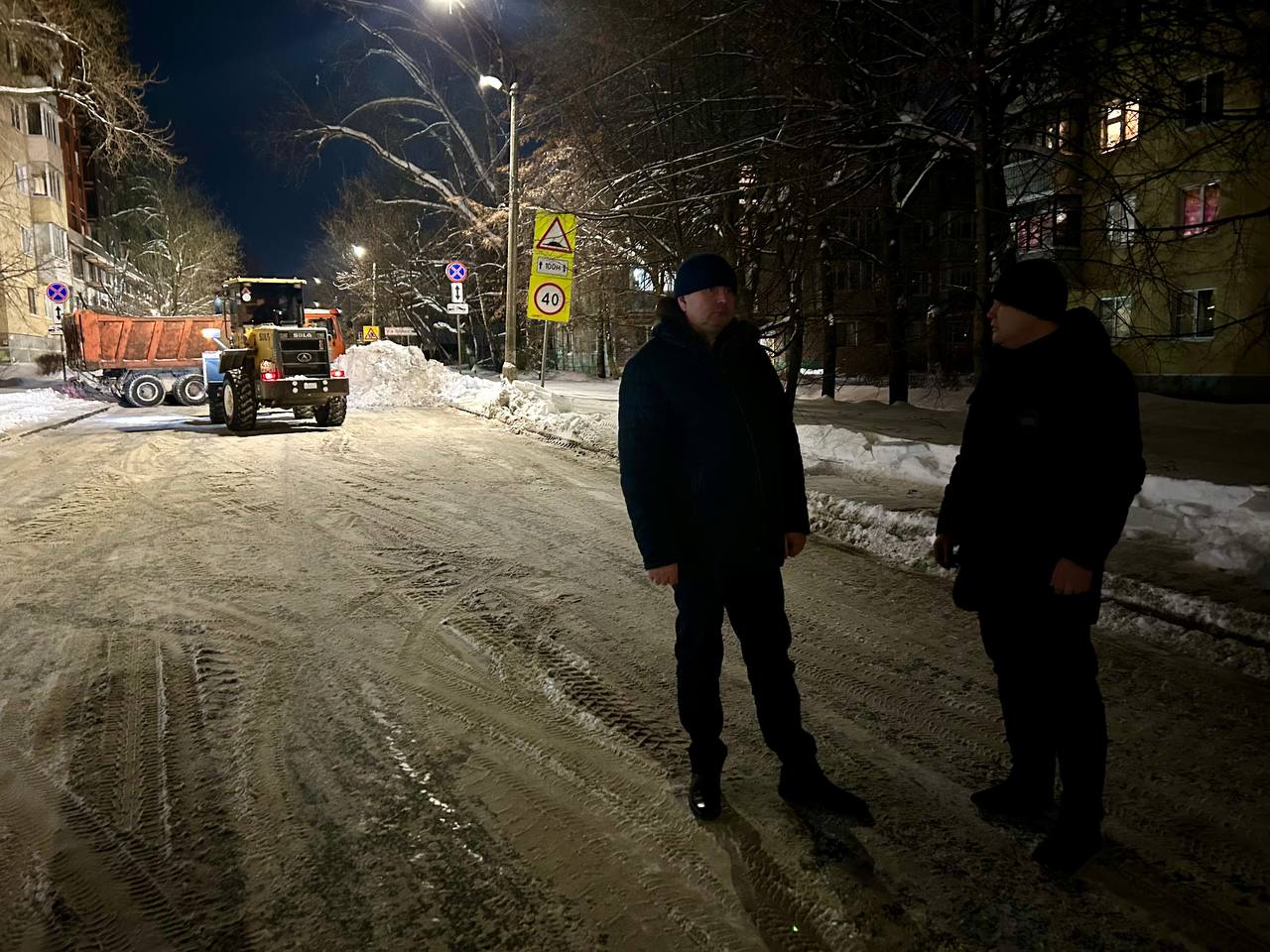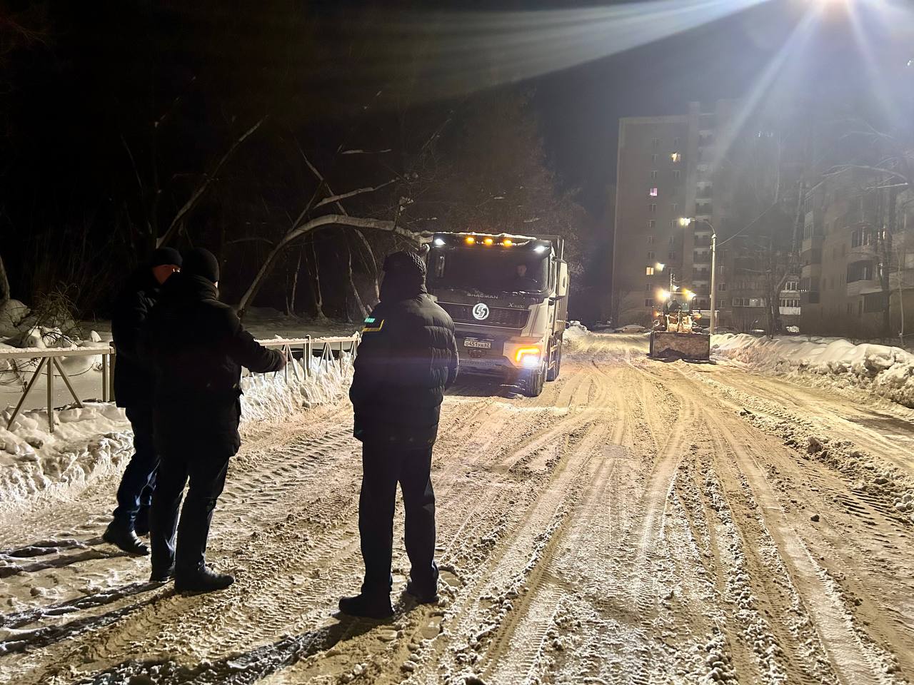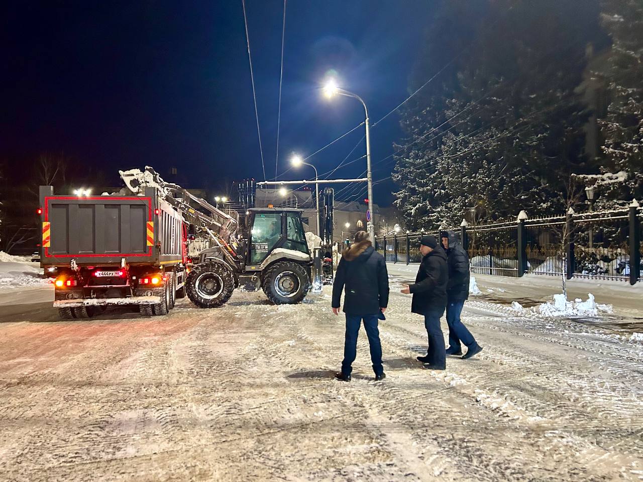 Продолжаем вывоз снега с городских территорий. Работы проводим преимущественно в ночное время — это позволяет не препятствовать движению автотранспорта в дневные часы. На Интернациональной, Костычева, Ленского Комсомола, Чкалова, Мичурина, Шевченко, Братиславской и других участках ночью работала техника Дирекции благоустройства. Во время объезда отметил, что на Мервинской улице и Московском шоссе дорога хоть и почищена, но сильно заужена, нужно пройти грейдером и сдвинуть снежную массу на зеленку.