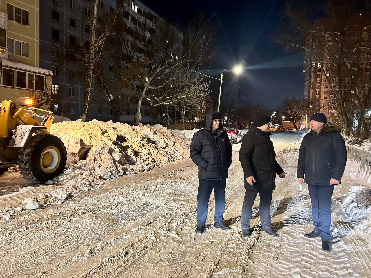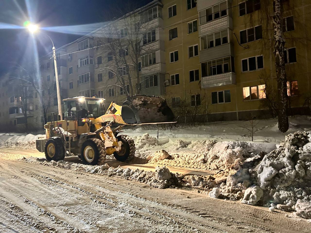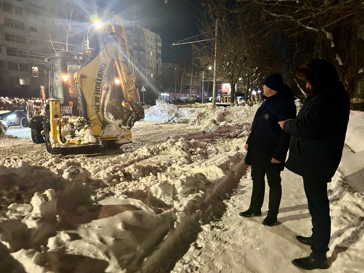 Продолжаем вывоз снега с городских территорий. Работы проводим преимущественно в ночное время — это позволяет не препятствовать движению автотранспорта в дневные часы. На Интернациональной, Костычева, Ленского Комсомола, Чкалова, Мичурина, Шевченко, Братиславской и других участках ночью работала техника Дирекции благоустройства. Во время объезда отметил, что на Мервинской улице и Московском шоссе дорога хоть и почищена, но сильно заужена, нужно пройти грейдером и сдвинуть снежную массу на зеленку.