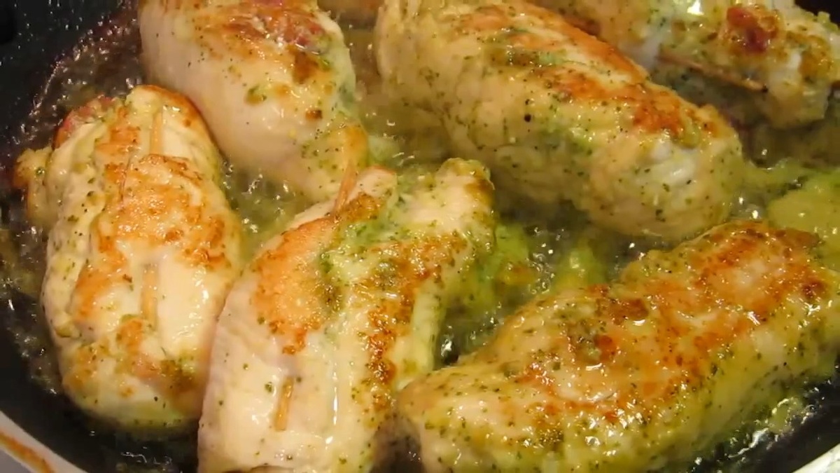 Куриные грудки рекомендуется разрезать вдоль, а затем, по желанию, слегка отбить. Каждый кусочек покрывают столовой ложкой соуса, добавляют кружочек помидора и тертый сыр. Скрученные рулетики аккуратно фиксируются зубочистками и обжариваются на сковороде до появления золотистой корочки. Затем рулетики можно довести до готовности запеканием в духовке при температуре 180 градусов Цельсия в течение около 20 минут.