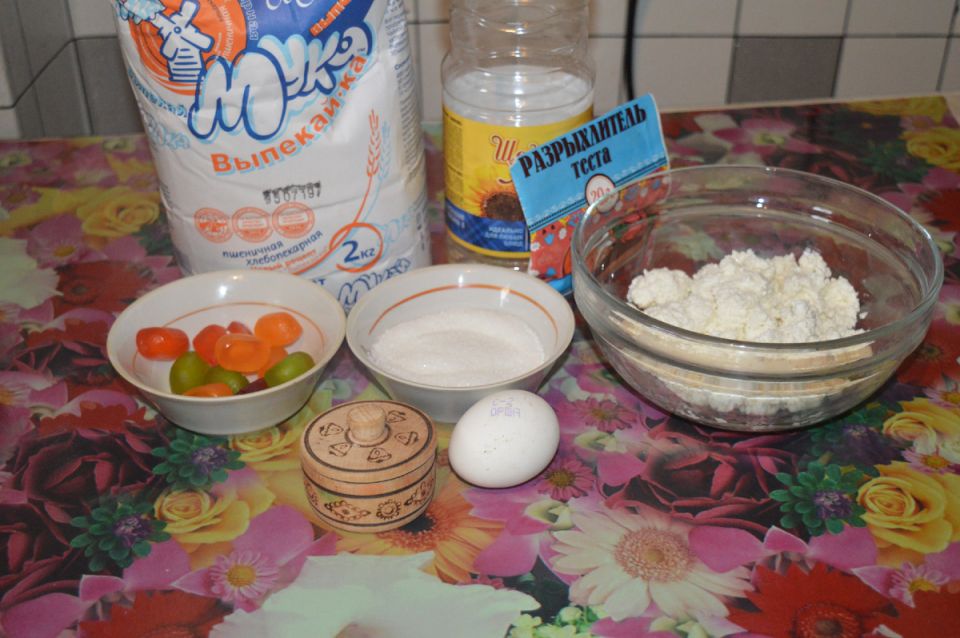 Первым делом следует подготовить все ингредиенты. В миске хорошо перетирают творог с сахаром и солью. Затем добавляют яйцо и растительное масло, взбивая массу до однородной консистенции. После этого в общую массу высыпают разрыхлитель и муку, тщательно замешивая тесто.