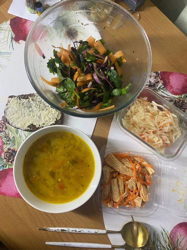 - Завершение дня с овощным супом, в котором остался лишь бульон.