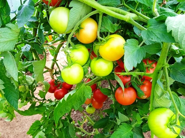 В этом году порадовал новый для опытных садоводов сорт Улуру Охра. Он подтвердил все ожидания: кусты усыпаны крупными плодами. Одним словом, не разочаровали. Однако среди множества сортов нашелся и такой, что заставил улыбнуться: Поцелуй Герани. На его кустах так много плодов, что прямо просится в шутках сказать: «уж лучше бы не завязывался вовсе». Эти детерминантные томаты растут в открытом грунте, и если все конце концов завяжутся, будет интересно наблюдать за их размером.