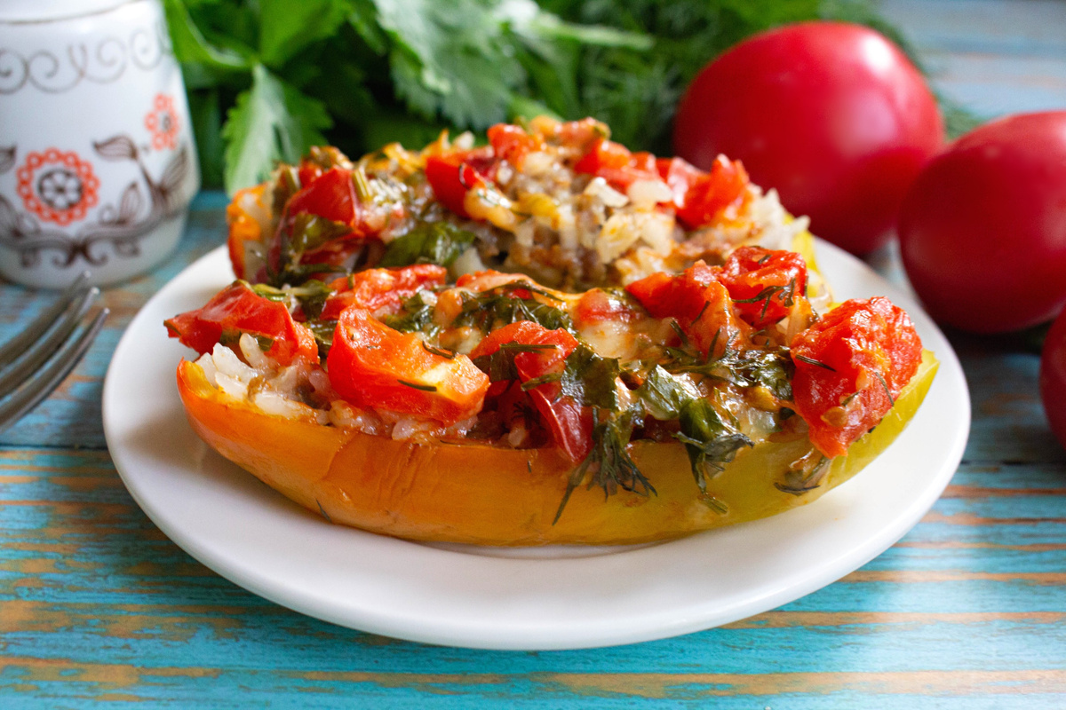 Когда стандартные рецепты начинают наскучивать, стоит обратить внимание на необычный подход к приготовлению фаршированных перцев. Эти перцы порадуют яркими цветами, насыщенным ароматом и удивительной сытностью. Для начинки можно выбрать любой фарш по вашему желанию, а зелень — ту, которая больше нравится. Твёрдый сыр добавляет великолепный вкус, а маленькие сладкие помидоры делают блюдо ещё более аппетитным. Большие болгарские перцы в этом рецепте смотрятся особенно эффектно, особенно в виде длинных плодов.