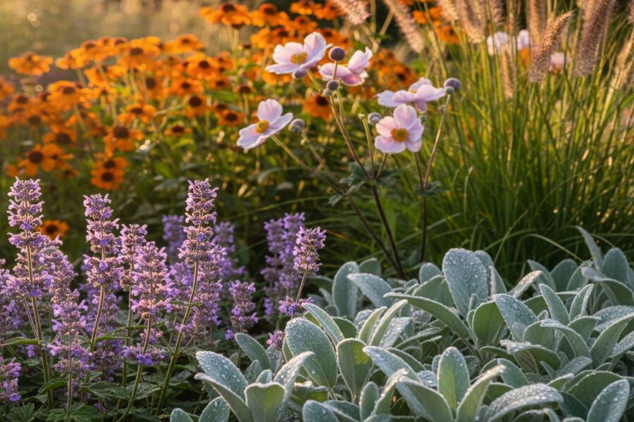 - Цветущие все лето: Котовник, Рудбекия, Гелениум для непрерывной декоративности.