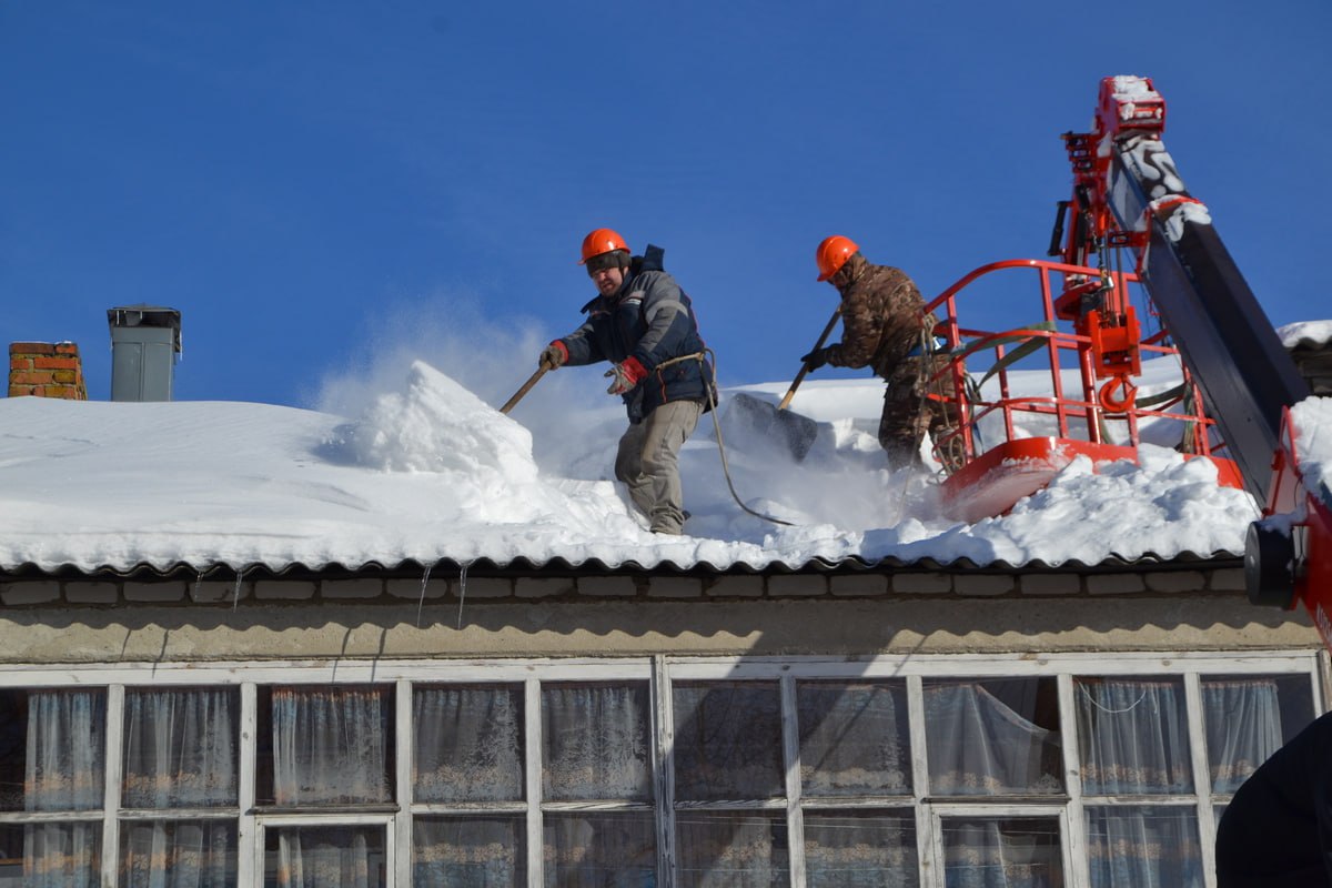 В среду, 11 февраля, крышу с помощью спецтехники начали расчищать от снега.