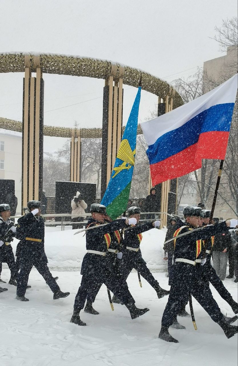 Все присутствующие почтили память воинов-интернационалистов минутой молчания и возложили венки и цветы к мемориалу. Курсанты Рязанского десантного училища прошли торжественным маршем.