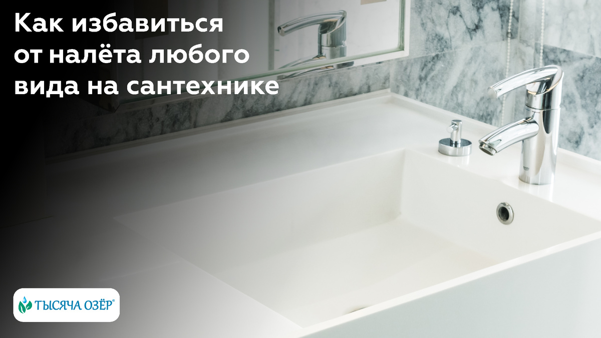 Также можно обратиться к специализированным очистителям. Гели для сантехники ТЫСЯЧА ОЗЁР, не содержащие хлора, эффективно борются с бактериями и известковым налетом, при этом обеспечивая приятный аромат при уборке.