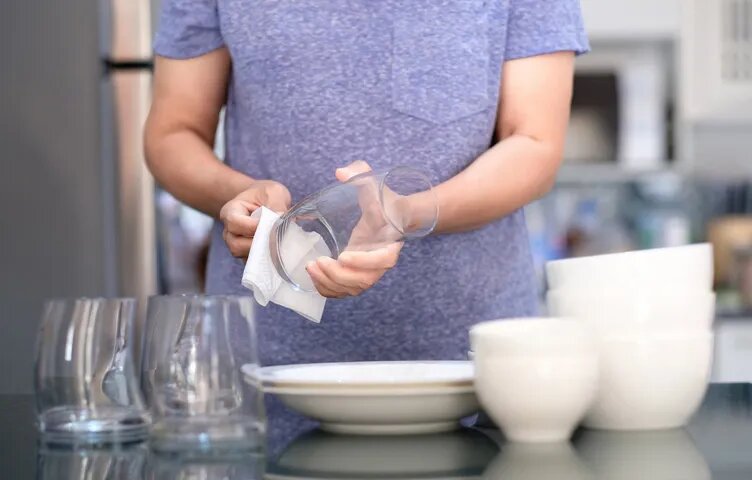 Стеклянные и хрустальные предметы лучше мыть вручную, избегая резких перепадов температур. Для их чистки подойдут мягкие губки и моющие средства, а высушивать изделия следует чистой тканью из микрофибры.