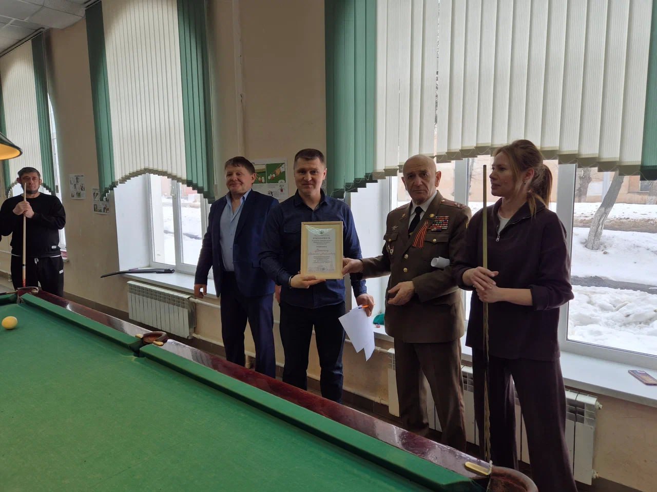 Начальник управления общественных отношений Мария Бобкова вручила благодарность за содействие в проведении Спартакиады тренеру-преподавателю высшей квалификационной категории по бильярдному спорту СШОР «Фаворит» Виталию Гранкину.