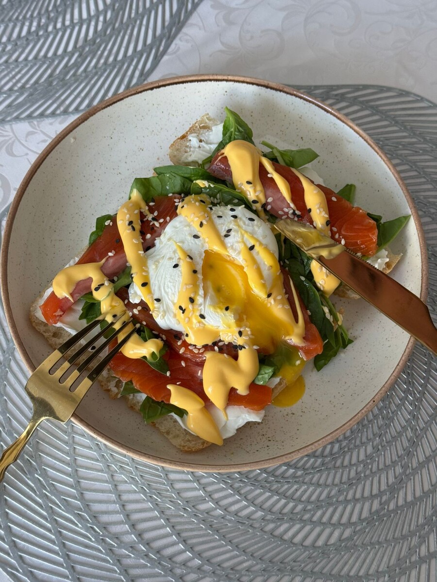 Брускетта с форелью и яйцом пашот: идеальный завтрак за 15 минут
