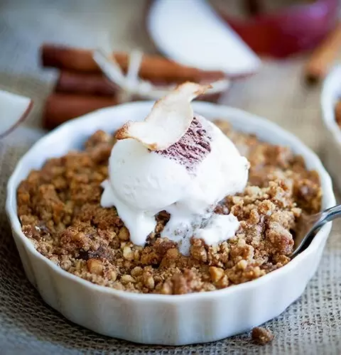 В этом рецепте знакомый и любимый десерт обретает новое звучание благодаря сочетанию миндаля и корицы, придающих яблокам новый, изысканный аромат.
