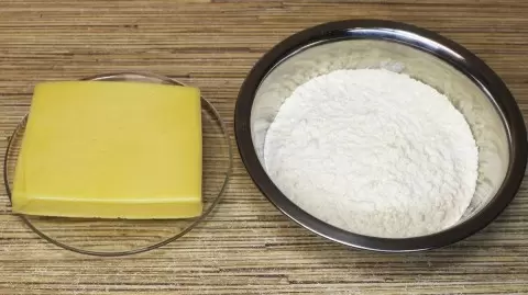 Приготовление начинается с просеивания пшеничной муки, что делает текстуру теста более легкой и воздушной. Затем стоит натереть выбранный сыр на мелкой терке, добавив его к муке. Вместе с холодным, нарезанным на кубики маслом ингредиенты перетираются до образования крошки. Важно делать это быстро, чтобы масло не растаяло.