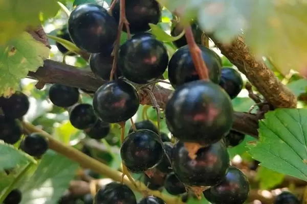 Августа – это куст средней высоты, достигающий 70-90 см. Он хорошо развивается, имеет плотную крону и крупные, насыщенно-зеленые листья, которые добавляют декоративности. Ягоды черноплодной смородины отличаются блестящей оболочкой глубокого черного цвета и весом от 1,6 до 3,2 г. За средней толщиной кожицей скрывается сочная и мягкая мякоть.