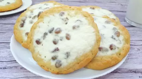 - Ингредиенты для начинки: белок, мягкий творог, кукурузный крахмал, ванилин, подсластитель и изюм.