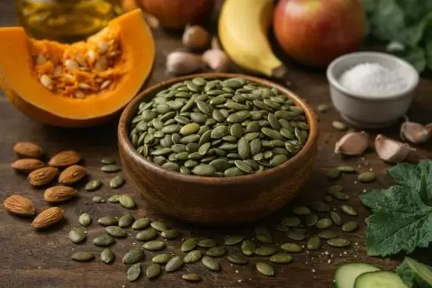 - Цинк и его важность: Тыквенные семечки — это один из лучших природных источников цинка, который играет ключевую роль в поддержании иммунной системы, здоровья кожи и волос, а также гормонального баланса. Особенно цинк необходим мужчинам, так как помогает в поддержании нормальной функции простаты.
