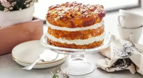 Хотя этот десерт и считается праздничным, он имеет свои достоинства. Дрожжевое тесто легче воспринимается организмом, а заварной крем пополняет запасы кальция и белка.