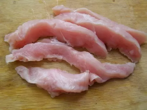Куриное филе нарезается на длинные кусочки, что позволяет ускорить процесс приготовления и избежать слипания. Мясо также можно обвалять в специях и немного панировки, что добавит сочности и аромата в готовое блюдо.