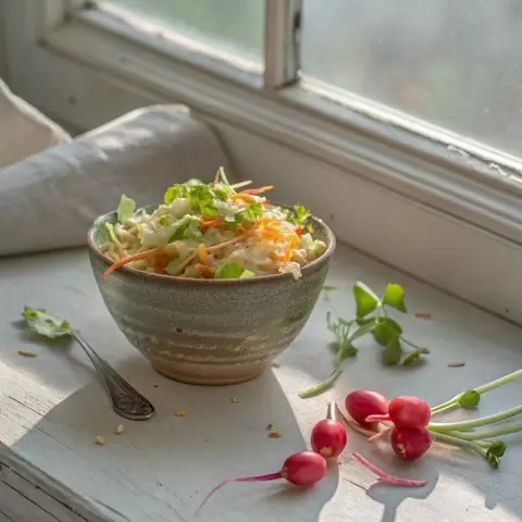 - Хрустящий салат из молодой капусты с кунжутом — легкость, свежесть и яркие нотки создадут идеальное начало для любого ужина.