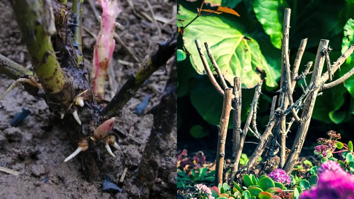 Первый шаг — обрезка: уберите все мертвое до живой ткани. После этого защитите место прививки, засыпав его компостом слоем около 7 см. Второй шаг — укрытие. Воспользуйтесь пластиковой бутылкой, чтобы создать тепличные условия вокруг основного стебля. Это значительно ускорит пробуждение почек.