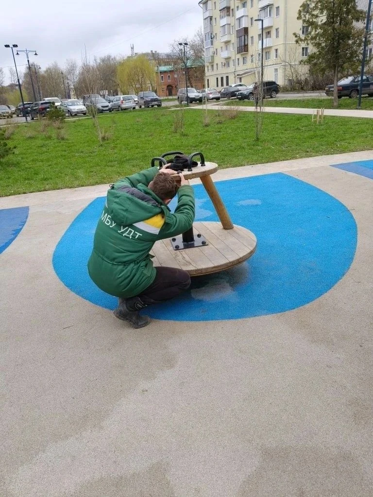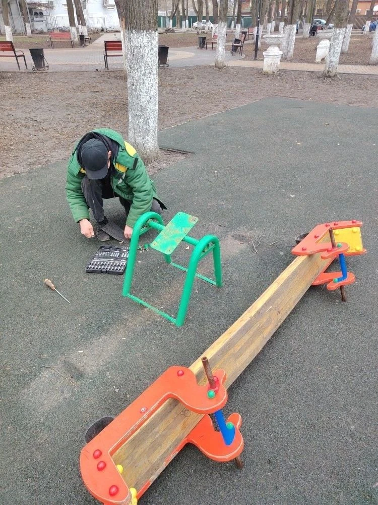 В сквере на улице Керамзавода и на Лево-Лыбедском бульваре отремонтировали карусели, чтобы обеспечить безопасность детей.