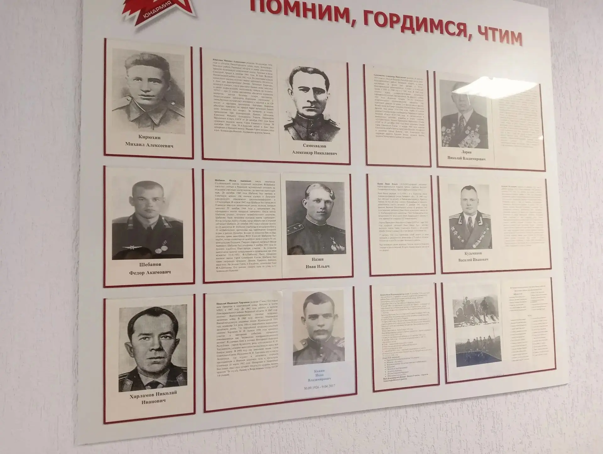 Сегодня члены Избирательной комиссии Рязанской области с правом решающего голоса Илья Блохин, Илья Буренин и Наталья Гордеева ознакомились с материалами выставки, посвященной жизни и подвигам Кожина, уроженца села Лопухи (ныне Александро-Невский муниципальный округ), награжденного медалью «За Победу над Германией».