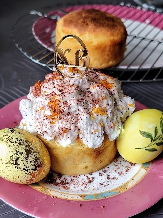 После выпекания куличи следует оставить остывать, затем аккуратно снять бумажные формочки и украсить.