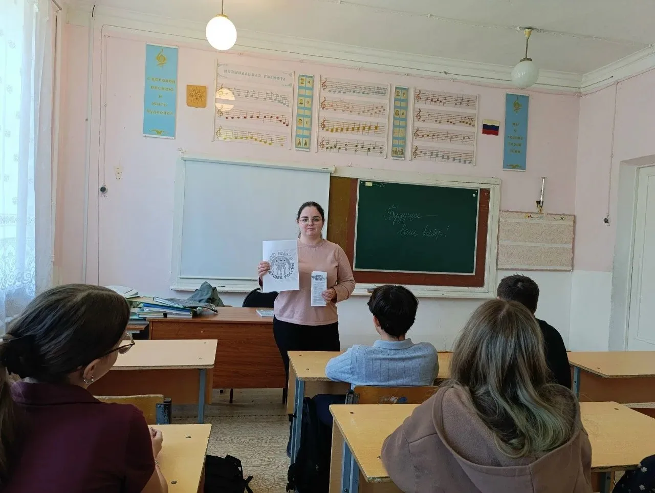 Для школьников МБОУ «Кирицкая СОШ» состоялся информационный час «Будущее - наш выбор!». Секретарь УИК № 656 Ирина Лазарева и член УИК Мария Антоненко рассказали ребятам о порядке голосования.