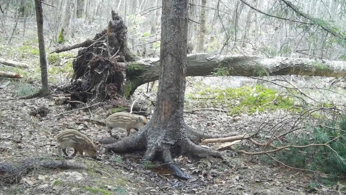 В Окском заповеднике одна из камер, установленных в лесу, запечатлела полосатых кабанят-сеголеток, сообщили в группе заповедника в «ВКонтакте».